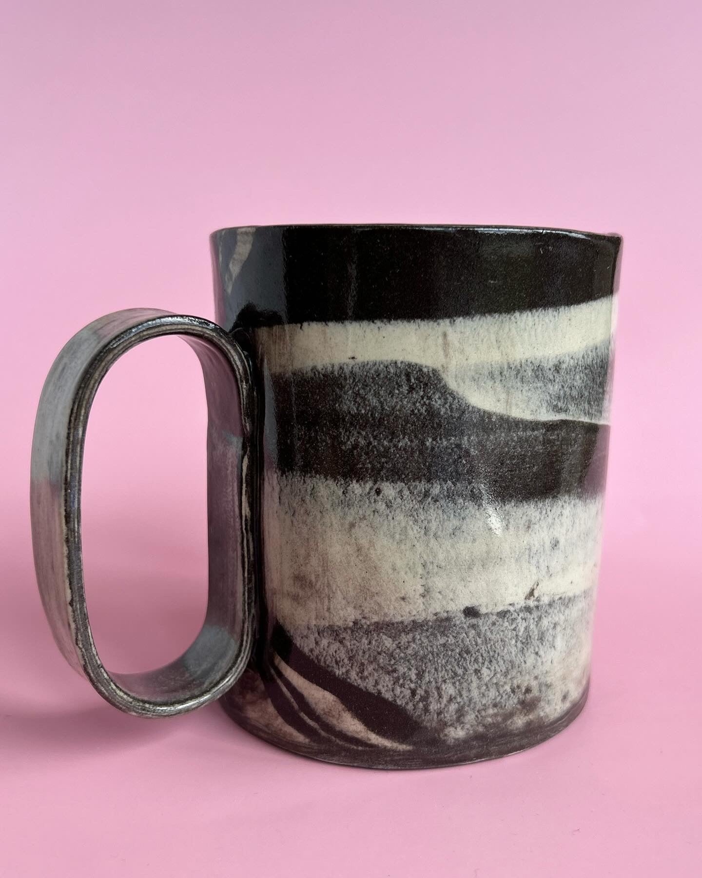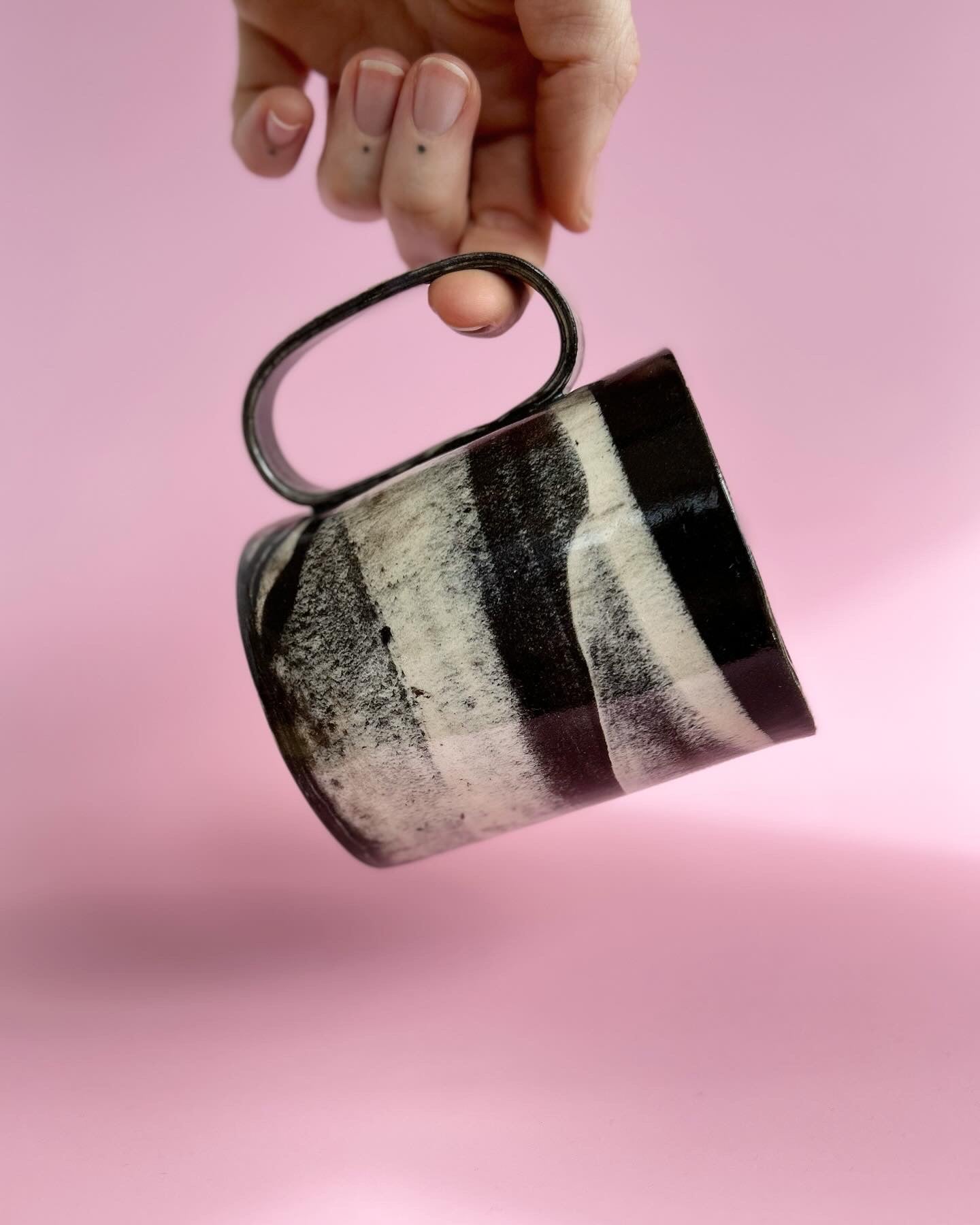 Koppen er en kombination af sort og hvid stentøjsler, og brændt ved 1230 grader.