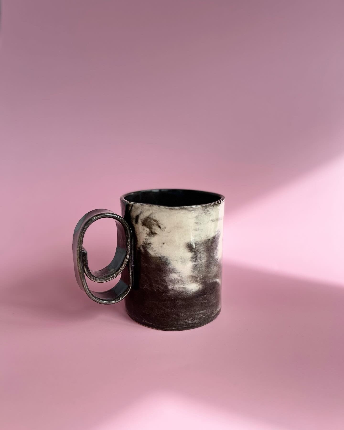 Koppen er en kombination af sort og hvid stentøjsler, og brændt ved 1230 grader.